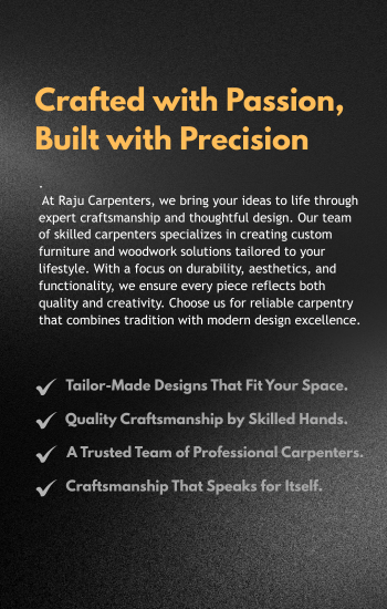 “We are skilled carpenters specializing in handcrafted woodwork, custom furniture, and interior solutions.With a passion for precision and quality, we bring your wooden dreams to life.”